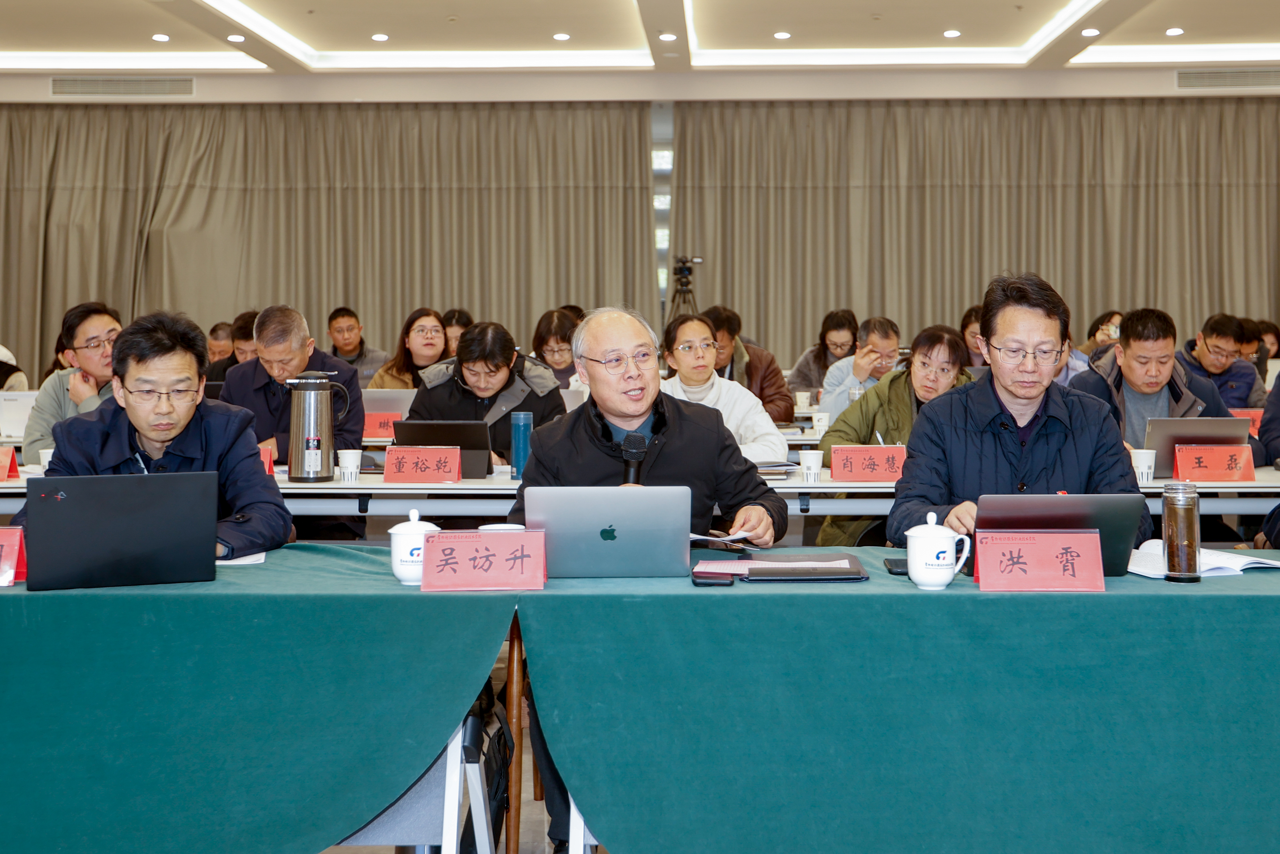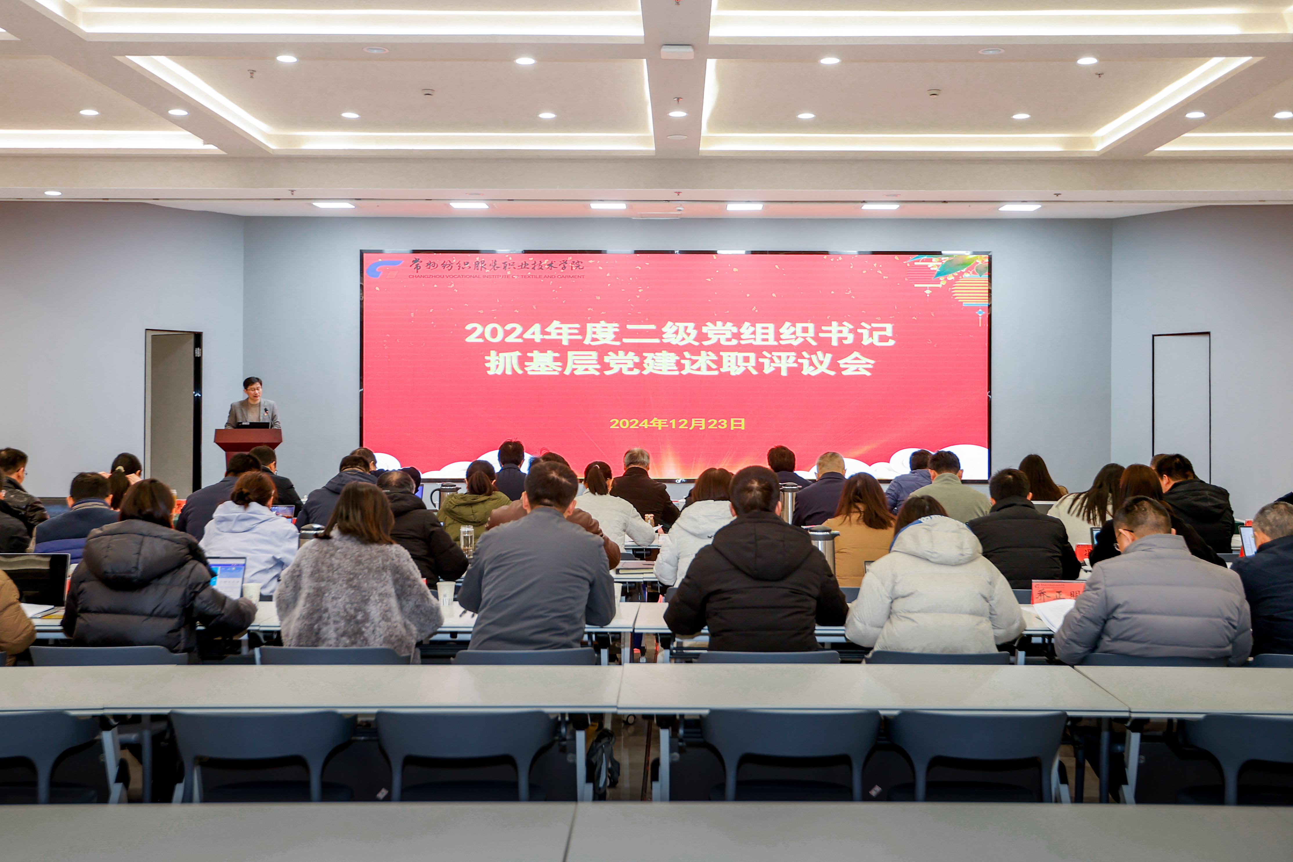 为深入学习贯彻习近平新时代中国特色社会主义思想,全面落实党的二十大和二十届三中全会精神部署,坚持大抓基层的鲜明导向,强化党组织书记抓基层党建工作主体责任,压紧压实基层党建、党风廉政和意识形态工作,持续提升基层党建工作水平,推动全校党的建设工作全面进步。按照省委教育工委《关于做好2024年度全省教育系统党组织书记抓基层党建述职评议考核工作的通知》有关要求,12月23日下午,学校党委在领秀展厅召开2024年度二级党组织书记抓基层党建工作述职评议会。会议由党委委员、党委组织部部长、党委统战部部长高江荣主持,学校党委领导班子、党群部门中层干部,二级学院党总支书记、副书记等相关人员参加会议。