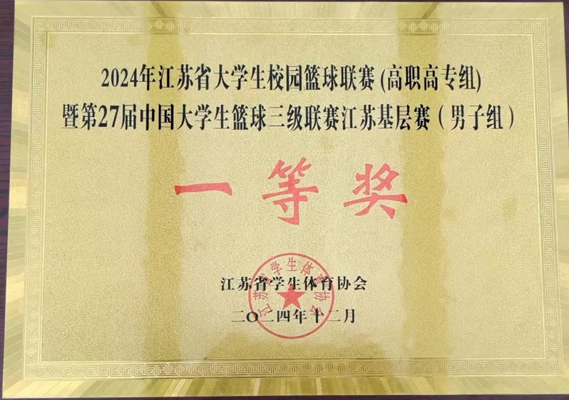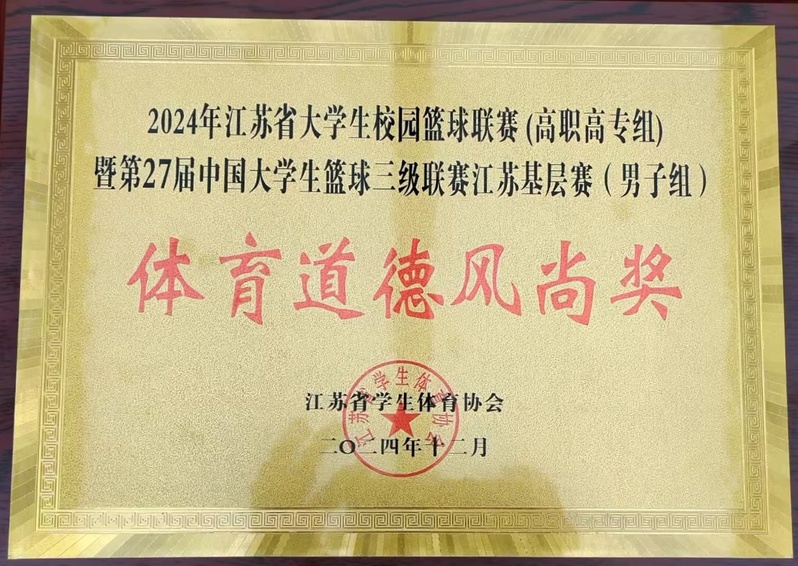 12月16日至24日,2024年江苏省大学生校园篮球联赛(高职高专组)暨第27届中国大学生篮球三级联赛江苏基层赛在南京信息职业技术学院举行。由体育部吴志勇、王鹏老师指导的男子篮球队再创球队历史最好成绩,获得一等奖(第二名),被赛事组委会评为“体育道德风尚奖”。