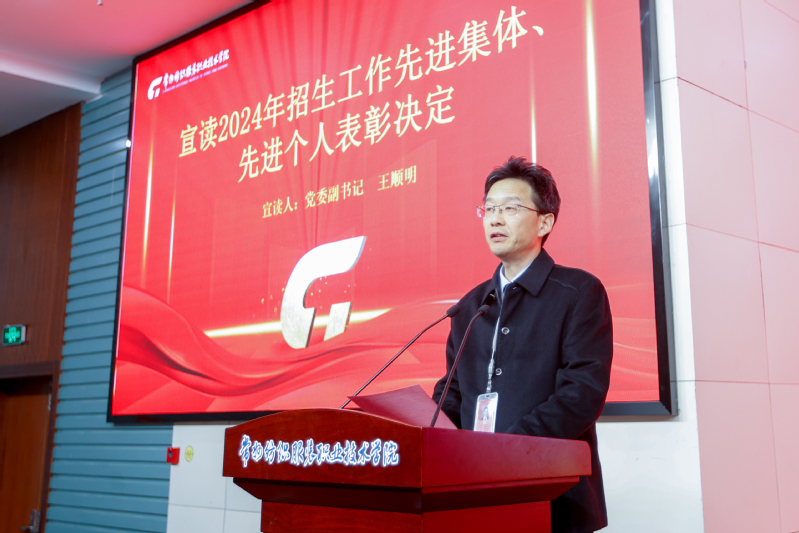 党委副书记王顺明宣读了《关于表彰2024年招生工作先进集体、先进个人的决定》。党委副书记、校长洪霄,纪委书记林素琴,党委委员、组织部部长高江荣,党委委员、宣传部部长夏斌分别为9个先进集体、75名先进个人颁奖。随后,服装与时尚设计学院党总支副书记林继昌、创意设计学院党总支书记祝燕芳和数字商贸学院党总支书记林洁分别作为招生工作、先进集体,就业工作代表进行交流发言,为全体教职工提供了极具实操性与启发性的“招生就业工作宝典”。
