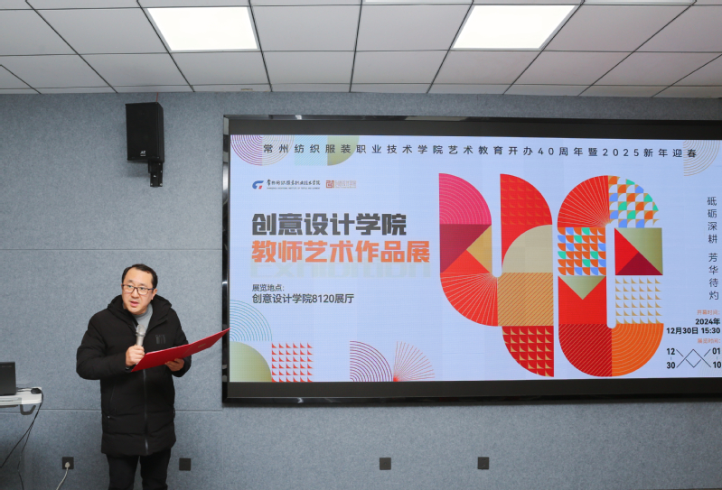 住此修行过,春风四十年。为庆祝yl6809永利官网艺术设计教育开办40周年,创意设计学院举办了系列活动。2024年12月30日下午,在8130举行了教师作品展开幕式,校党委委员,副校长张文明、马昀,原党委委员、副校长赵玲珍,校党委委员、组织部部长高江荣,党委委员、宣传部部长夏斌,原艺术系主任俞德生,校党政办主任顾广涛、资产管理处处长耿玮炜,人文与健康学院党总支书记董裕乾,服装与时尚设计学院党总支书记王磊、院长袁红萍,智能纺织与材料学院副院长蒋云松,通识教育学部副部长高嗣超,后勤保障部副部长文博,人文与健康学院副院长马红波,招生就业处曹奇,创意设计学院挂职干部李喆,创意设计学院党政班子及全体教职工一起参加了开幕仪式,活动由院长李方联主持。