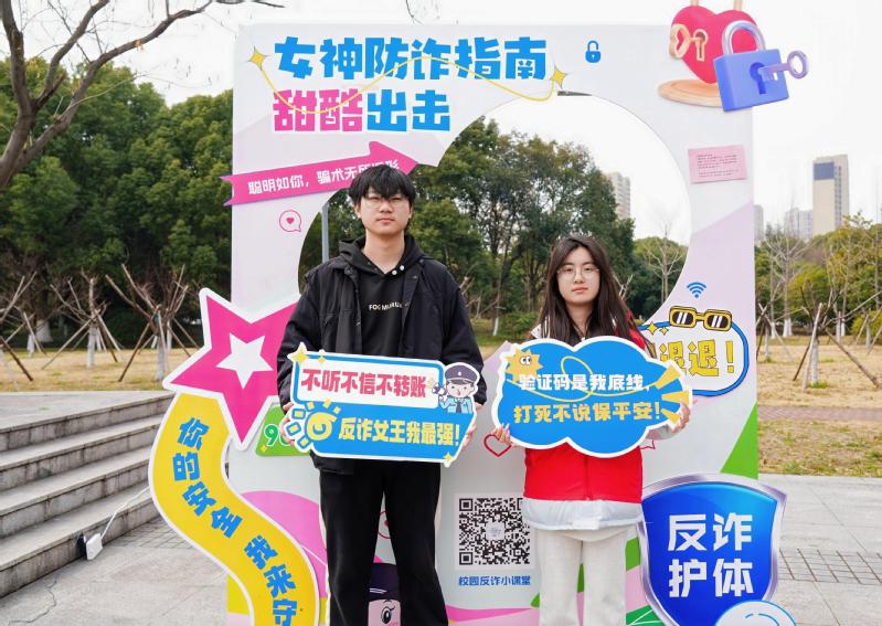 校学生会策划的“反诈护红颜,共筑安全圈”——安全守护活动同学们准备了线上《防范电信网络诈骗宣传手册》,同学们转发宣传手册内容即可领取小礼品。同时,活动现场精心制作的“女神反诈”打卡墙吸引众多同学驻足,纷纷持反诈宣传牌拍照打卡成为校园反诈代言人,用实际行动为自己和身边人织就严密安全网,让智慧成为守护美丽的坚固盾牌。