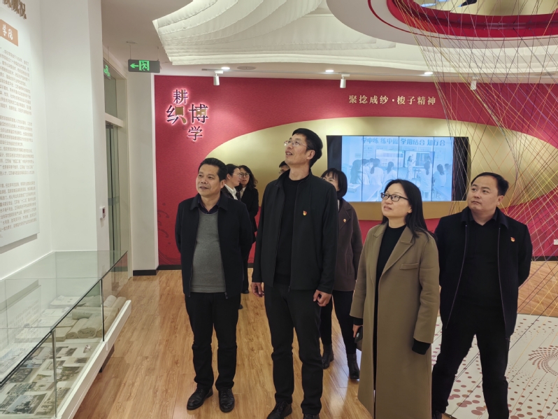 会后,王超一行在学校党委委员、纪委书记林素琴的陪同下先后参观了服装智能教学工场、纺织科技文化馆。
