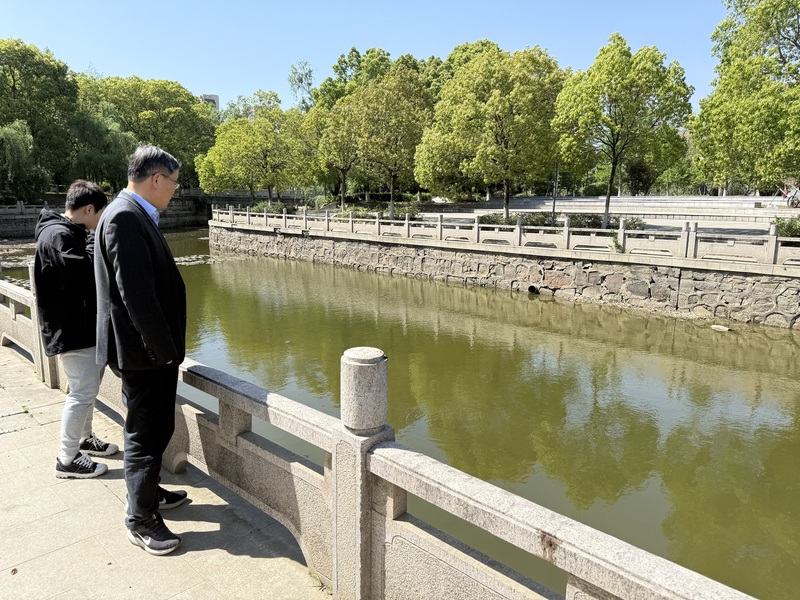 与会人员一行先实地勘查了大学城北河道常纺段水质、沿岸环境及排水设施等情况,结合现场情况,共同分析寻找河污成因和解决办法。
