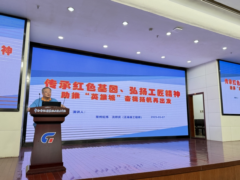 最后,常州虹纬纺织有限公司技能大师沈桥庆以“传承红色基因、弘扬工匠精神”为题开展专题讲座,结合企业实际案例,剖析智能纺织技术的应用场景与发展方向,为师生带来行业一线的前沿洞见。