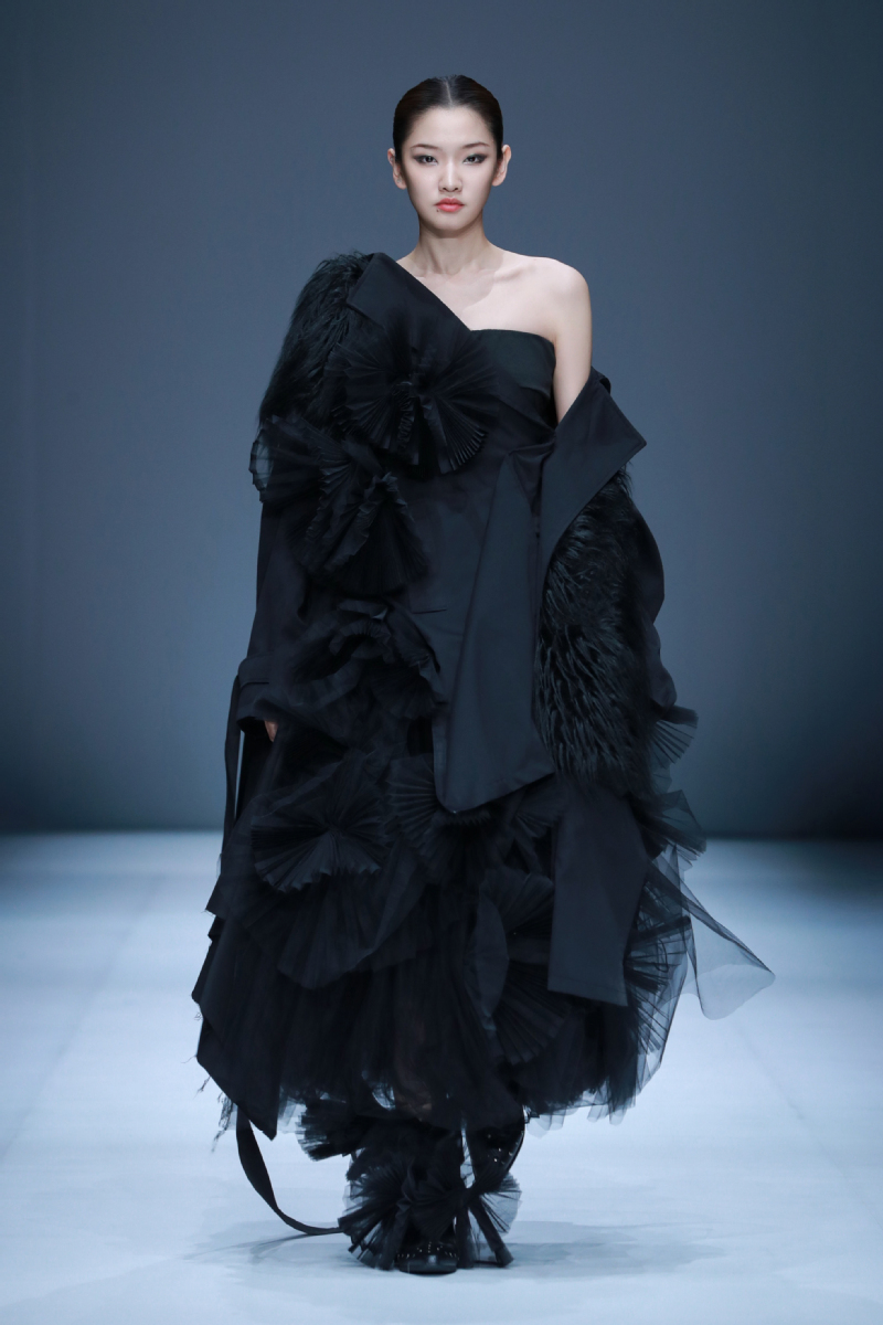 篇章三“焕承”以“焕”点明创新活力,以“承”紧扣传统根基,将地域文化和民俗特色融入现代服装设计理念,自然呈现新旧交融,使传统元素在现代服装中焕发生机,以此塑造富有活力的东方新形象。