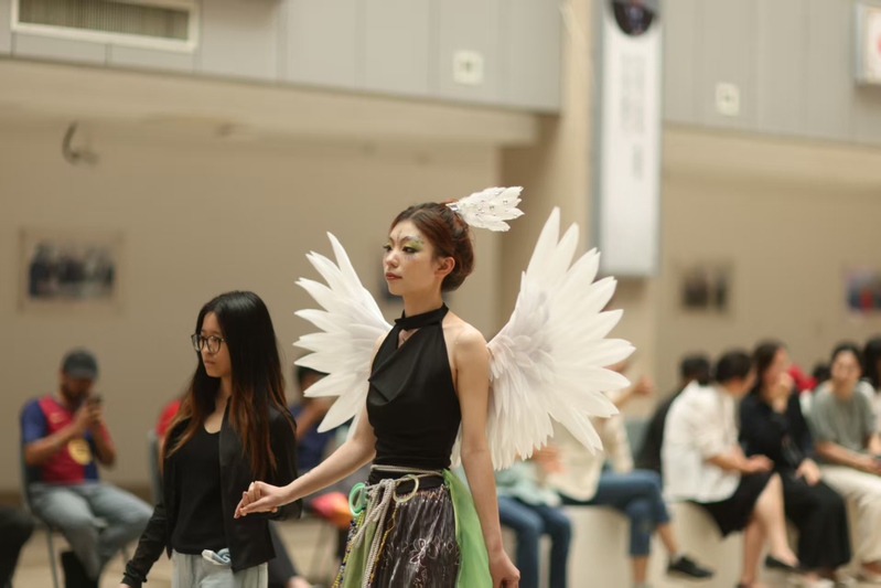 发布会现场,一件件精心设计的作品依次亮相,瞬间吸引了在场所有人的目光。这些作品通过发型设计、妆容搭配、饰品设计及服装造型等多维度的巧妙融合,展现出新时代年轻人独特的视角与创意。从中国传统纹样中提取的古朴韵味,从少数民族艺术元素里汲取的灵动色彩,再到几何图形造型带来的现代感,设计者们大胆运用廓形、材质、工艺、色彩,对传统与现代进行全新的解读,为观众带来了一场前所未有的视觉享受。每一组作品都凝聚着师生们的智慧与汗水,彰显着他们对专业的执着追求与无限热爱,现场不时响起阵阵掌声与赞叹声。