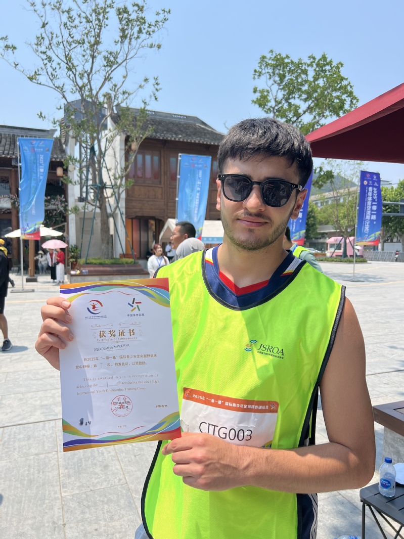 5月20日-27日,2025“一带一路”青年体育交流周(江苏)活动在江阴飞马水城举办。本次交流周活动由国家体育总局对外体育交流中心、江苏省推进“一带一路”建设工作领导小组办公室指导,江苏省体育局、江苏省教育厅、江苏省人民政府外事办公室主办,江苏省国际体育交流中心、无锡市体育局、江阴市人民政府承办。永利官网选派来自孟加拉国、马来西亚、塔吉克斯坦等3个国家的11名国际学生参与本届活动的定向越野分项。塔吉克斯坦籍留学生马努获得2025“一带一路”国际青少年定向越野训练营第7名,永利官网获得优秀组织奖。