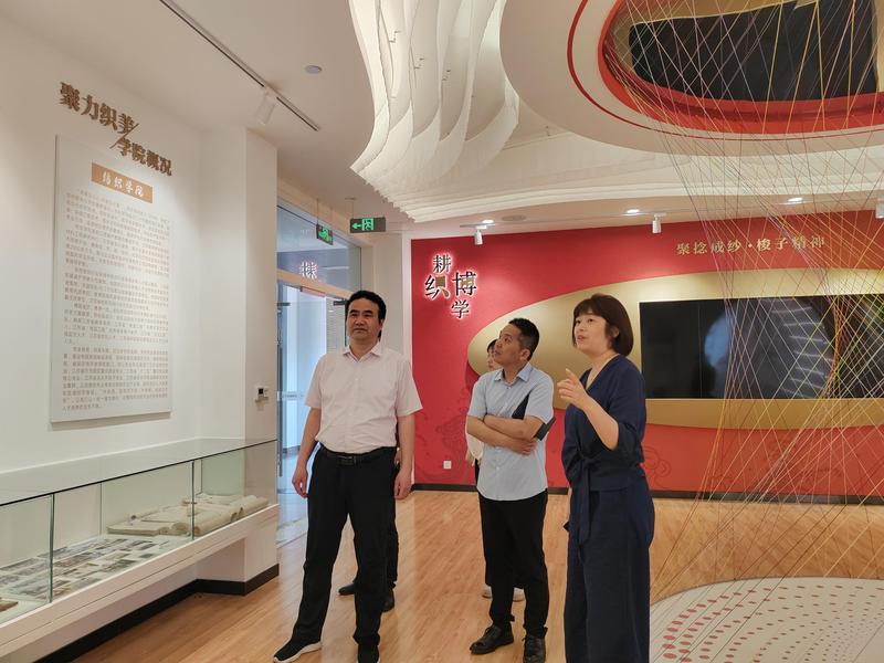 姜为青一行还参观了服装智慧工场、纺织科技文化馆,深入了解学校在科技创新、文化传承及专业发展方面的成果。双方一致认为,面对纺织产业转型升级的要求,需要进一步加强资源共享与优势互补,共同推进专业链与产业链对接,为行业高质量发展提供人才支撑。后续,双方建立常态化沟通机制,在产教融合项目申报、跨区域校企合作等方面开展务实合作,携手为纺织服装产业发展注入新动能。