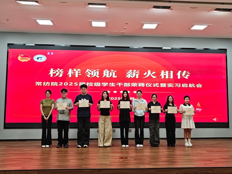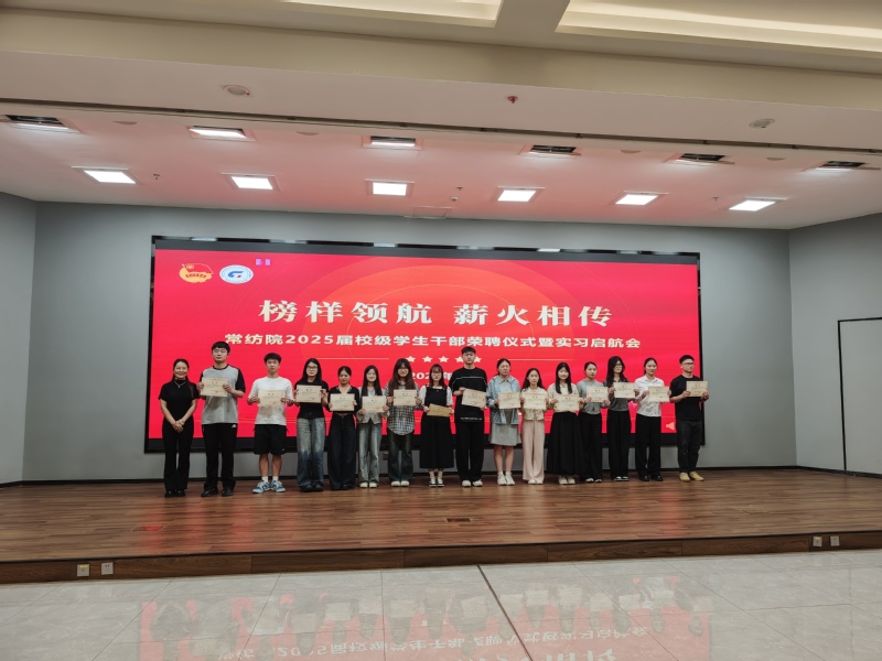 6月24日,“榜样领航 薪火相传”2025届校级学生干部荣聘仪式暨实习启航会在领秀展厅举行。校团委全体老师与2025届团属学生干部及大一干事代表参加活动,活动由团委书记朱鹏主持。