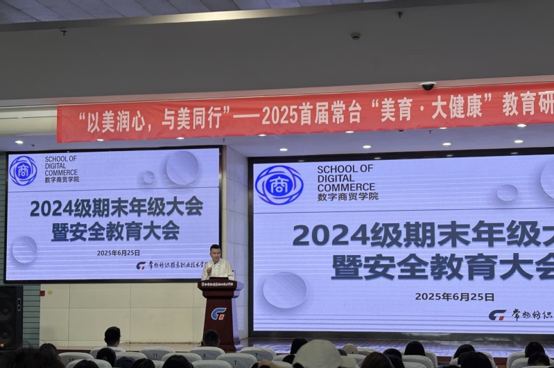 为全面总结本学期工作,强化安全教育与诚信教育,保障学期末各项工作有序开展,数字商贸学院于6月25日13:30在图文报告厅主会场及各班班会教室分会场,召开2024级期末年级大会暨安全教育大会。学院党总支副书记乔正明、全体辅导员、2024级全体班主任及学生共同参与此次大会。
