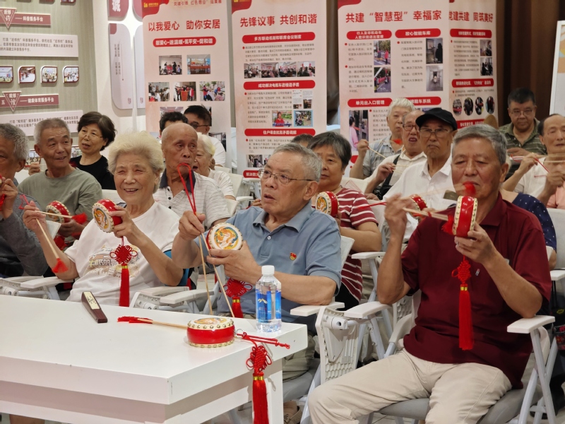 为了让红色文化体验更加立体多元,实践团巧妙地将小岗村的国家级非物质文化遗产——凤阳花鼓融入活动现场。在实践团成员的耐心引领下,老年党员们纷纷参与到花鼓技艺的学习中来,从起初的生涩模仿,到逐渐有模有样地打出节奏,现场欢声笑语与鼓点交织。随着全场共同演奏,在悠扬的花鼓声中,“小岗精神”的创新活力与奋斗精神悄然浸润心田。