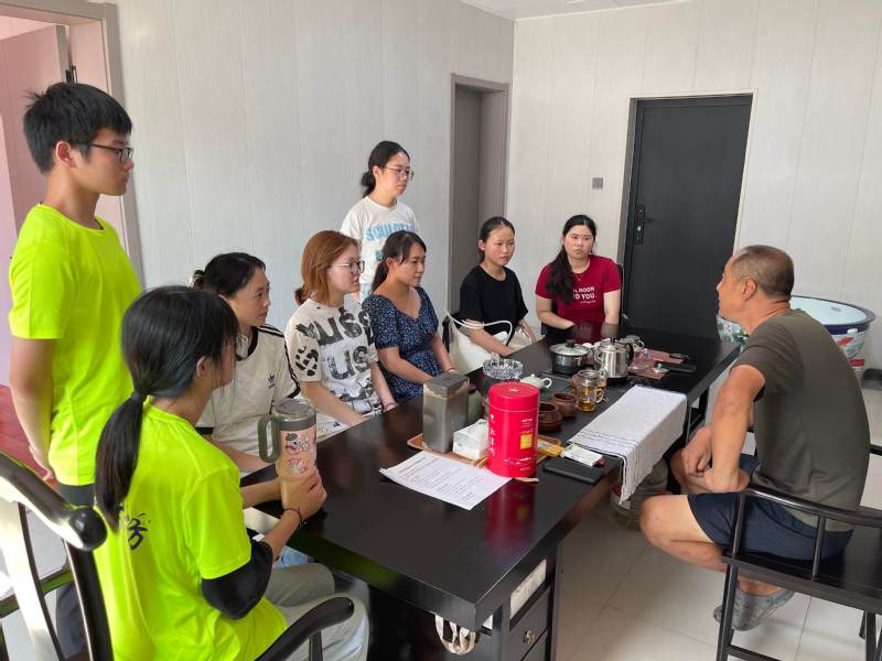 田大海分享了两代人五十余年的养殖历程:从最初的技术摸索到如今形成标准化养殖体系,他用坚守与创新让四腮泡金鱼成为洑家村的文化名片。“保护和传承这一特色品种,不仅是为了延续传统,更是希望通过产业发展让更多人了解金鱼文化的独特魅力,让这一文化绵延不断。”田大海的话引发了实践团成员的强烈共鸣。
