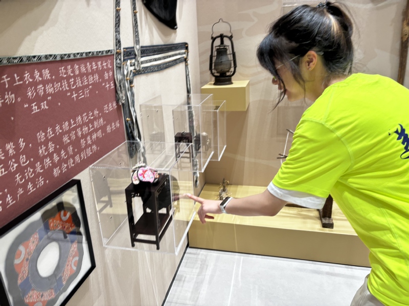 在畲族文化馆,实践团成员了解了列入国家级非物质文化遗产的畲族服饰制作技艺。服饰上的一针一线都编织着畲族的历史与传说,让人惊叹不已。在讲解员生动的讲述中,成员们了解到畲族的起源、迁徙以及独特的风俗习惯,仿佛亲眼目睹了畲族人民丰富多彩的生活场景。