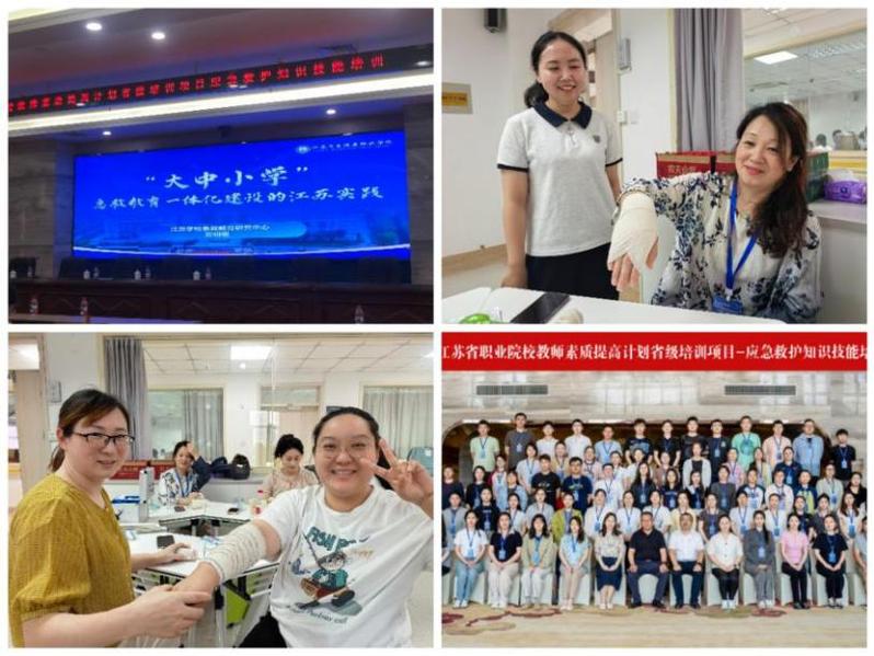 积极推进急救教育。以“健康学校”“全国急救教育试点校”创建为抓手,后勤部联合人事处、体育部组织医护人员与体育教师参与江苏省职业院校教师应急救护知识技能省级培训,派代表赴盐城市盐都区红十字会考察学习先进急救经验;同步推进“健康学校”“全国急救教育试点校”方案,起草急救教育课程课标,调研形成“急救教育实训中心”建设方案;利用急救知识服务师生,加强社会影响力,为学校暑期社会实践团队师生开展急救知识技能专题培训,组织医护人员走进龙锦小学开展 “健康教育、急救教育”活动,实现急救知识从校园到家庭、到社会的延伸普及,全方位守护师生健康与校园安全,工作案例被省级媒体江苏省学校急救教育智慧平台录用2篇。