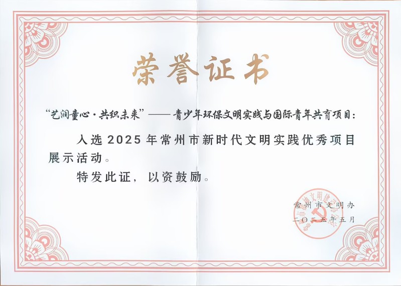 本次实践活动是常州市社区教育“艺感·数智美学实验”特色项目工作室建设的重要组成部分,致力于推动劳动教育、美育与环保教育的融合创新。项目自启动以来,累计服务青少年500余人次,开展文明实践活动10余场,展览总观众逾万人。相关成果已在2024年常州市首届垃圾分类艺术展、江苏省“紫金奖”文化创意大赛中亮相,并获多家主流媒体专题报道,并于今年4月29日在市新闻传媒中心路演展示,入选2025年常州市新时代文明实践优秀项目,5月获中共常州市委宣传部的资助支持,进入全市宣传推广环节。