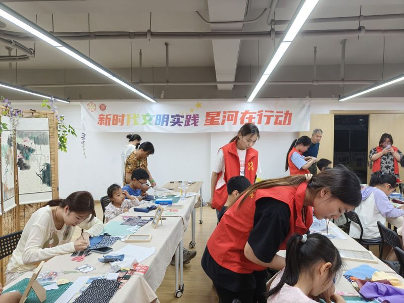 此次活动由学生实践团队发起,联合星河国际、府南社区党群中心开展,以旧衣拼布为载体,引导青少年将闲置布料创意改造成挂画等实用工艺品。该实践活动在专业教师和志愿者的指导下,孩子们动手剪裁、拼接,体验到利用生活物品开展创作的乐趣。期间,许多家长与孩子一同制定“家庭环保计划”,实现了“小手拉大手”的辐射效应。社区居民在分享会上纷纷表示,希望此类活动能持续开展,带动更多人参与绿色生活。