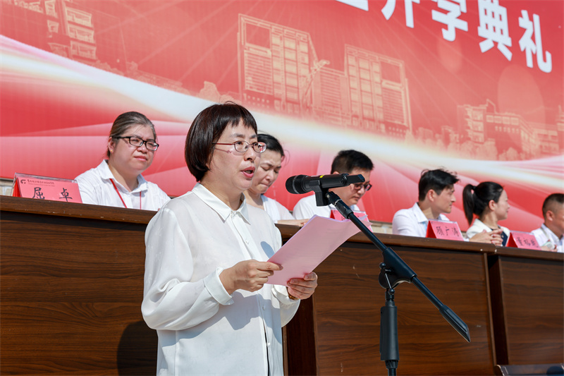 今年正值中国人民抗日战争暨世界反法西斯战争胜利80周年,学校以“赓续红色血脉·立志技能报国”为主题将开学典礼与爱国主义教育深度融合,为全体师生带来了一场意义非凡的“开学第一课”。开学典礼在庄严的升旗仪式中拉开序幕。洪霄首先代表学校向2025级新生致以热烈欢迎。他结合学校67年的办学历史指出,学校始终坚守“为党育人、为国育才”初心使命,与国家发展同频共振、与时代进步同向而行,始终致力于为学生的成长提供最优资源、创造最佳条件、搭建最好平台。立足新起点,洪霄勉励全体新生以家国为魂,从先辈奋斗征程中汲取精神力量,铸牢“强国有我”的青春担当;以热爱为炬,深耕专业沃土、钻研技能学识;以创新为刃,主动拥抱数智化转型,在破解成长难题中练就过硬本领。他进一步鼓励新生在常纺院筑梦、逐梦、圆梦,成长为情系家国、技术过硬、敢闯会创的新时代好青年,用青春力量为中华民族伟大复兴添砖加瓦!